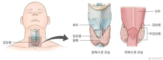 갑상선 기능 저하증이라고 우리에게 더 많이 알려진 갑상샘 저하증은 정확한 명칭은 감상샘 저하증이라고 하는데요. 갑상샘에서 분비되는 갑상샘 호르몬이 나오는 갑상샘은 전신의 에너지를 만들어내는 목 부위의 기관입니다.