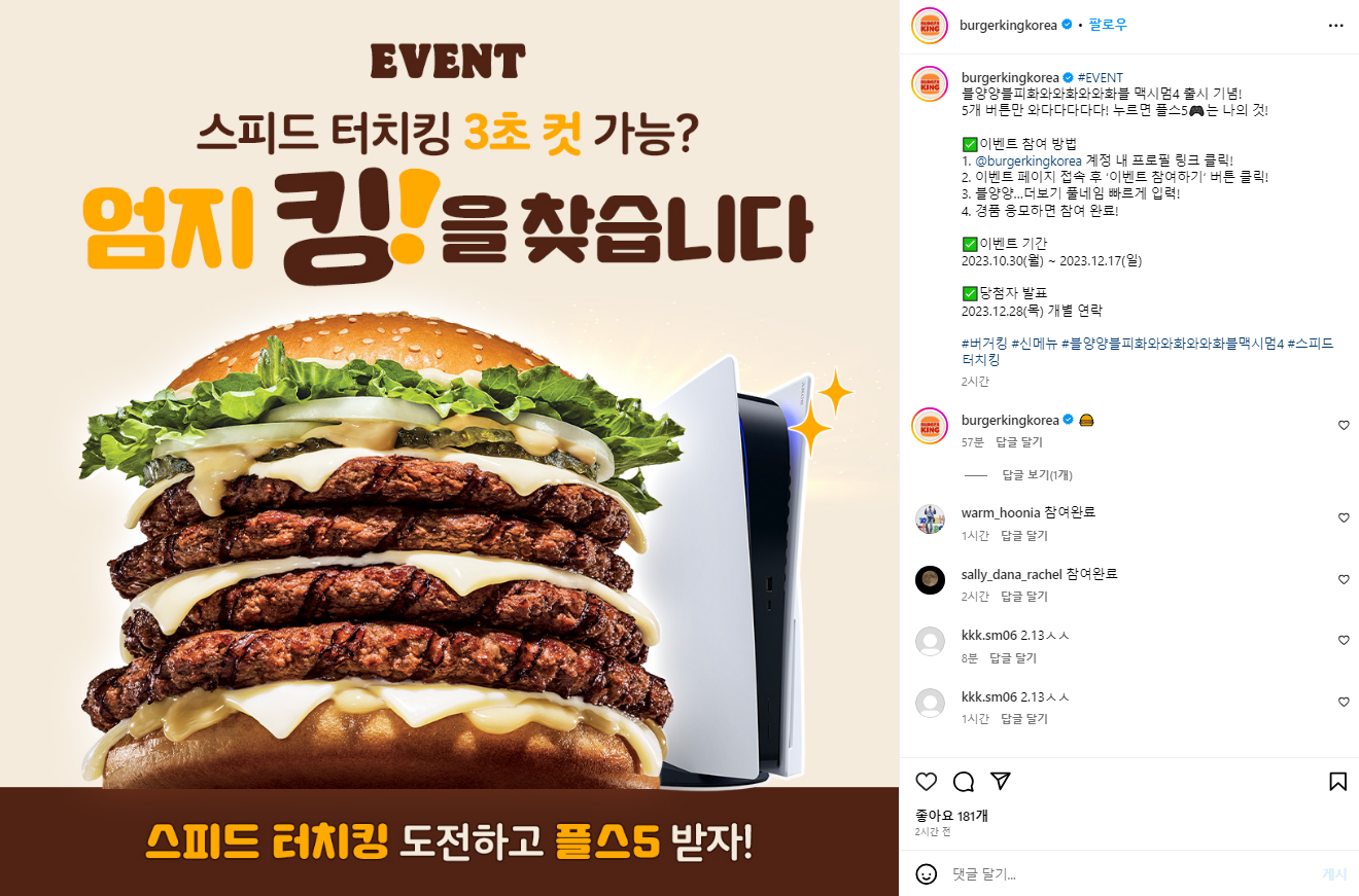 위 화면과 같이 빠르게 블양양블피화와와화와와화블을 빠르게 한글자씩 터치만 하면 되는 이벤트이고, 중복 참여를 통해 기록을 빠르게 할수록 당첨 확률이 올라가는 이벤트이기 때문에 직장이나 가정에서 동료나 친구들과 해보기도 좋고, 정말 재밌는 이벤트이면서도 플스5에서 대한 열망을 매우 높히는 이벤트입니다!