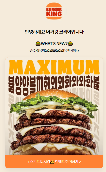 어이쿠.. 엄청난 괴물 버거가 탄생했네요. 버거킹에서 이번에 출시한 신메뉴가 정말 공격적이에요. 이름하여 '블양양블피화와와화와와화블 맥시멈'.. 그래서 줄여서 블양양 맥시멈...더보기인데요. 이 메뉴 특히 블양양 맥시멈4를 한입에 세로로 베어서 한입 드실 수 있는 분은 원피스 루피입니다 진짜.. 이 신메뉴에 대해서 알아볼까요?