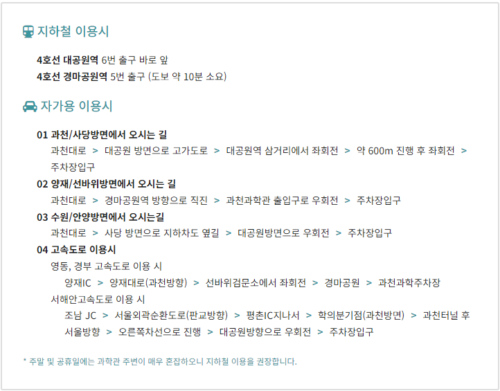 장소: 13817 경기도 과천시 상하벌로 110 국립과천과학관