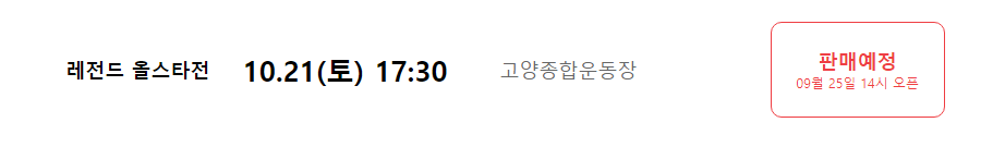 축구 레전드 올스타전 예매는 인터파크 티켓 사이트를 통해 예매가 가능합니다. 콘서트 예매나 스포츠 경기 이벤트 티켓 예매는 거의 오픈과 동시에 매진이 되는 만큼 이번에 진행되는 축구 레전드 올스타전 또한 티케팅 경쟁이 매우 치열할 것으로 예상됩니다.