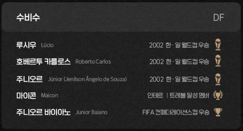 브라질 레전드 선수 명단입니다. 크흑. 키퍼부터 뽕맛이 장난이 아니네요. 세자르는 그 시절을 살짝 잘못 만나서 부폰이나 카시아스보다 저평가된 선수이지 브라질에서 키퍼를 진짜 몇년을 한 건지 모를 정도로 브라질 하면 키퍼가 세자르 밖에 안 떠오르긴 합니다. 그리고 수비수는 UFO 슛 이거 요즘도 중, 고등학교 학생들이 따라하나요? UFO 슛 하면 카를로스인데 이거 제 고등학교 시절에는 다 따라하다가 최용수 독수리 슛만 늘었던 그런 슛이었습니다. 카를로스 프리킥 나오면 진짜 대박일 것 같은데요. 뭔가 이탈리아 수비진 보다는 빈약해 보이긴 하지만, 테크닉이나 볼거리 면에서는 공격력까지 가미 된 브라질 수비진이 진짜 새롭게 보이긴 하네요.