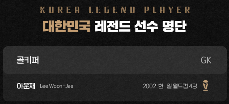 와. 이 형들을 이 한자리에서 보게 될 줄은 몰랐는데, 반가운 이름들이 정말 많이 보입니다. 특히 2002년에 저는 진공청소기 김남일 형을 진짜 목이 터져라 응원했었는데 김남일 형 이름도 보이구요. 요즘 골때녀 감독님들 긴장 좀 하셔야겠습니다. 김태영, 최성용, 최진철, 오범석, 백지훈, 조재진 형들은 골때녀 감독님이시기도 해서 얼굴을 TV를 통해 많이 봤었지만, 선수로 직접 뛰는 것을 볼 수 있는 기회입니다. 또 요즘 안정환, 이을용 형은 유튜브나 예능에서 자주 나오면서 뭔가 예능캐처럼 되었었는데 이을용의 왼발이나 판타지스타 안정환을 다시 보여줄 수 있을지 정말 기대가 많이 됩니다.